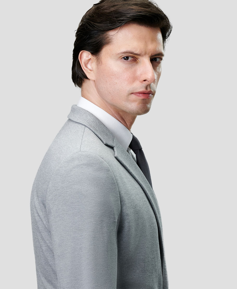 Your jacket collar should rest lightly against your shirt collar, without significant pressure or gaps in between.