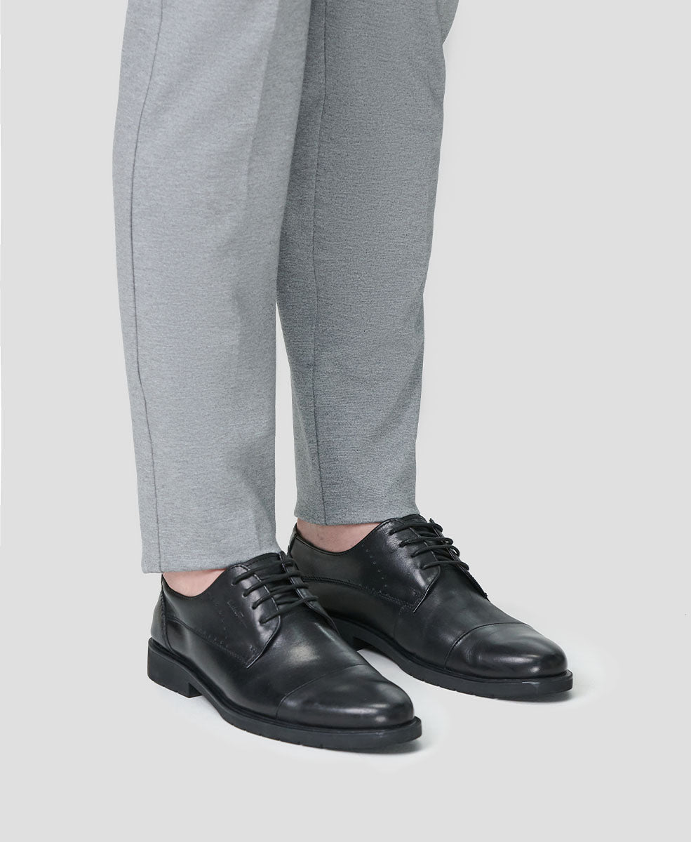Leaving too much pant hanging over your shoe can look messy.