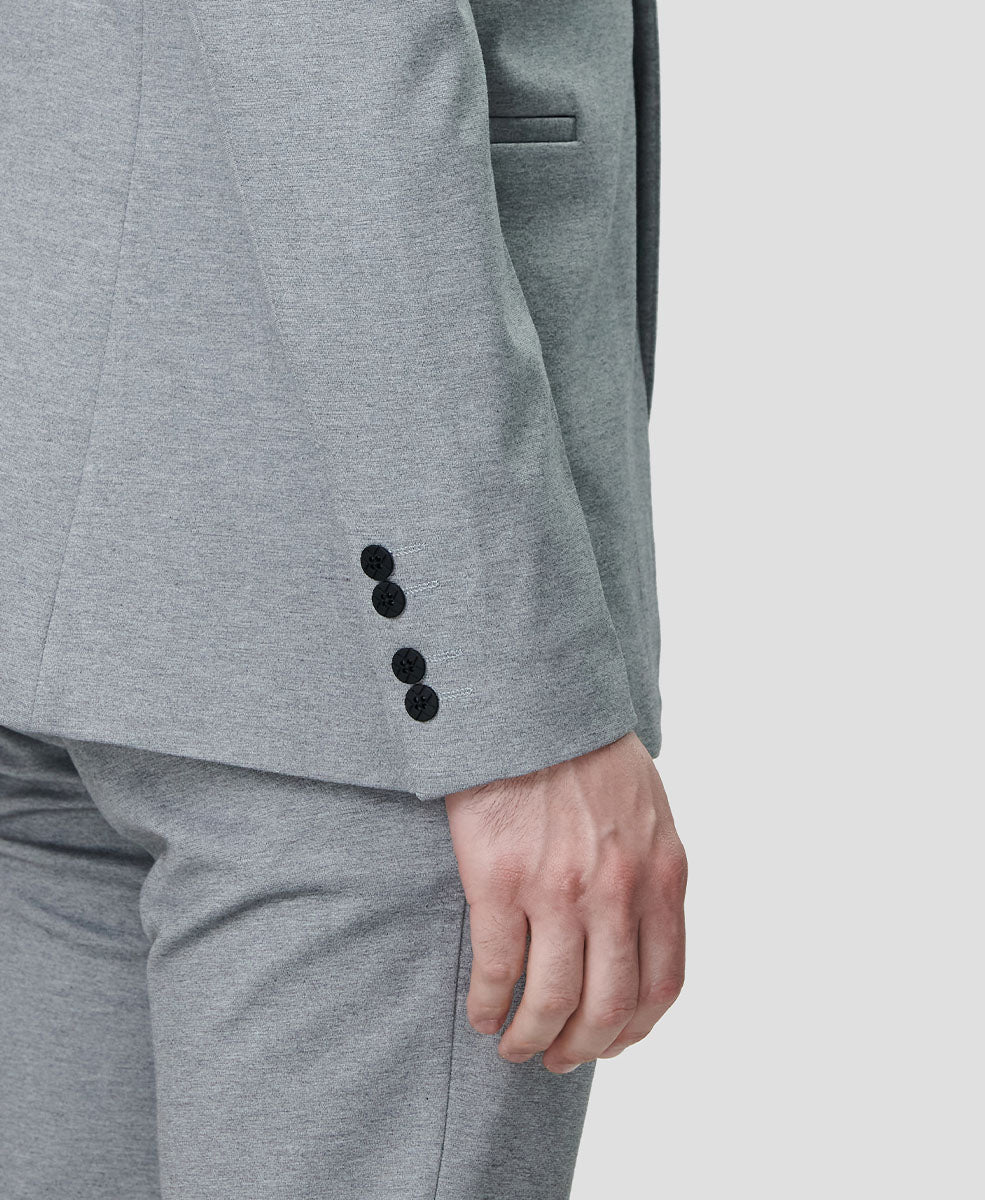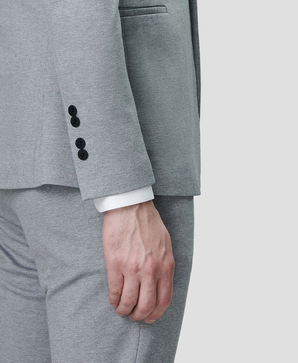 As a general guideline, there should be 1/4” to 1/2” of shirt cuff visible. The jacket sleeve should end around the wrist bone.