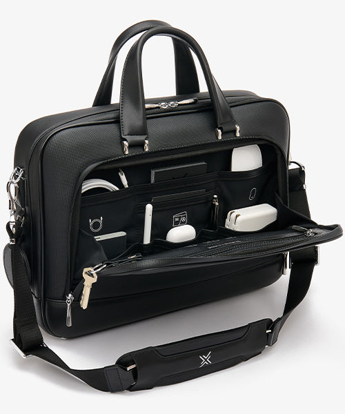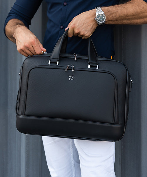 The padded shoulder strap and ergonomic handles maximize comfort while still keeping the elegance of a designer briefcase.