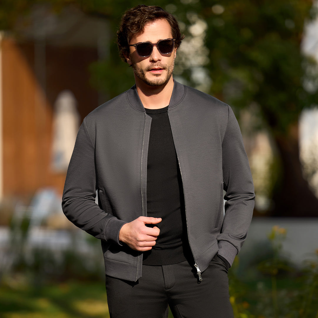 The only bomber jacket you’ll ever need—combining timeless style with cutting-edge functionality. Designed with a clean, modern silhouette and luxurious details, this jacket effortlessly blends casual refinement with advanced performance features, redefining versatility and durability.